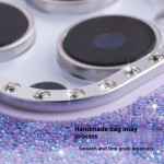 3. Cadre d'objectif élégant : Zone de l'objectif de l'appareil photo ornée d'un cadre métallique incrusté de strass étincelants.