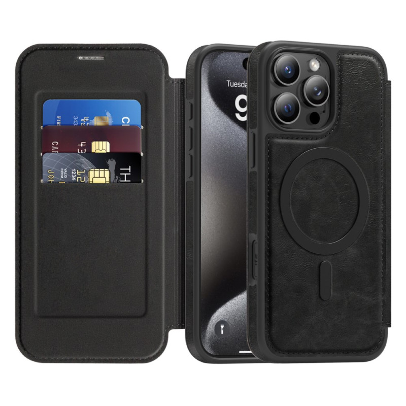 Flip Cier iPhone 15 Pro Max MagSafe Porte-cartes et Protection RFID