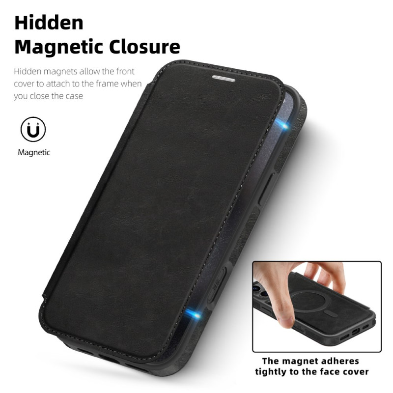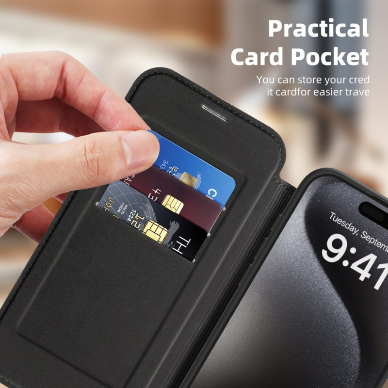 Découvrez notre housse élégante et fonctionnelle pour iPhone 15 Pro Max. Compatibilité MagSafe, porte-cartes intégré et technologie de blocage RFID pour une protection optimale. Fabriquée en TPU et cuir PU de haute qualité, elle offre durabilité et style tout en protégeant votre appareil des rayures et des chocs.