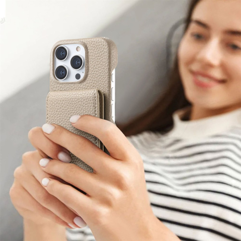 Découvrez notre coque premium pour iPhone 15 Pro Max, alliant protection et fonctionnalité. Dotée d'un porte-carte avec technologie de blocage RFID, cette coque en cuir texturé offre une absorption des chocs supérieure. Ses compartiments cachés, son support multi-angle et sa résistance aux empreintes et à l'eau en font l'accessoire parfait pour votre smartphone.