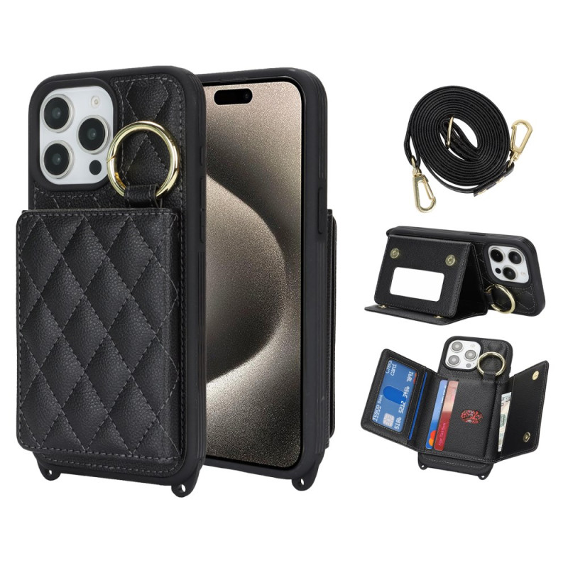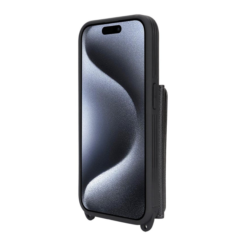 Découvrez notre coque innovante pour iPhone 15 Pro. Dotée d'un porte-cartes, d'un miroir intégré et d'une lanière ajustable, elle allie fonctionnalité et protection. Fabriquée en cuir PU texturé et TPU, elle offre une protection durable contre les chocs et les rayures. Le support intégré et la technologie de blocage RFID en font un accessoire pratique au quotidien.