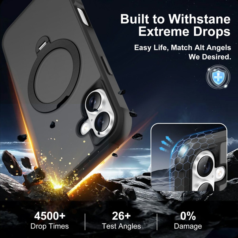 Découvrez notre coque de protection premium pour iPhone 16 Plus. Dotée d'un support rotatif pratique et compatible MagSafe, elle offre une protection optimale contre les chocs et les chutes. Son design innovant inclut un filtre anti-poussière pour le haut-parleur et des rebords surélevés pour l'écran et la caméra...