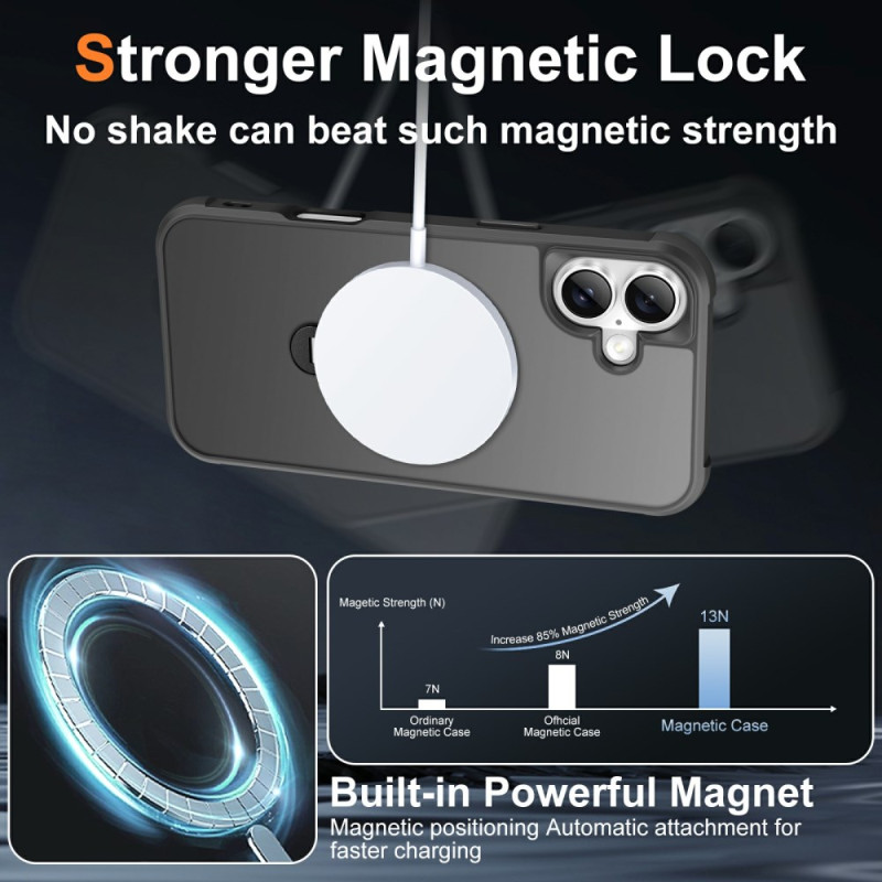 2. Compatible MagSafe : Un aimant intégré puissant assure un alignement précis avec les accessoires MagSafe et permet une charge sans fil plus rapide et plus stable.