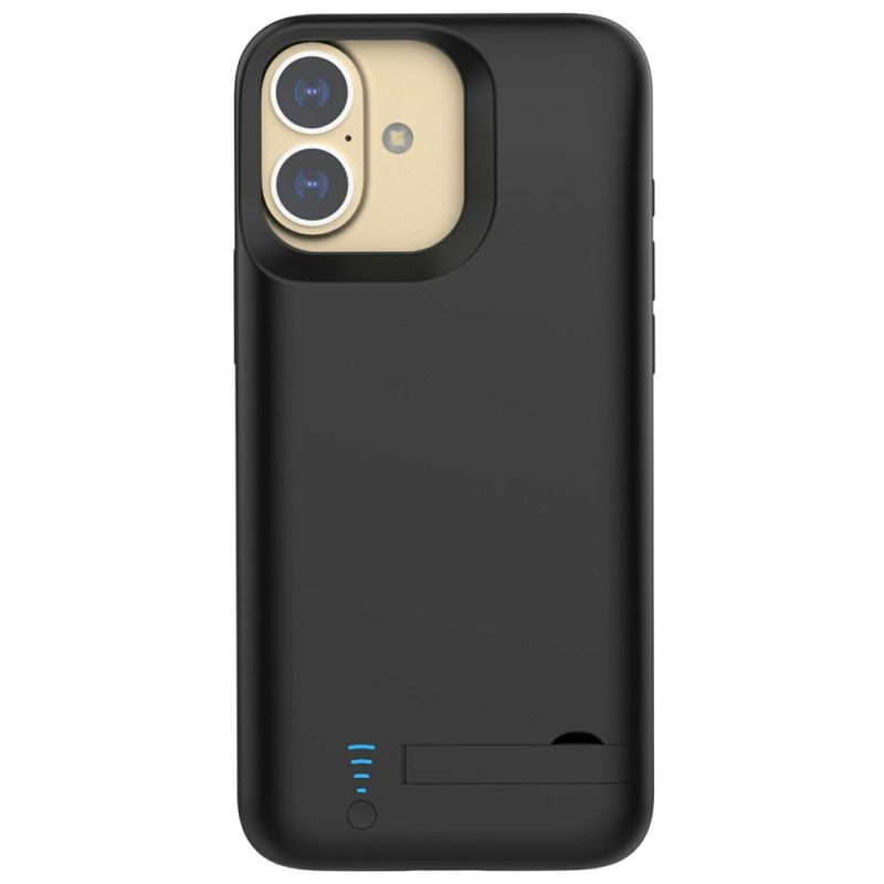 Cette coque batterie de 5000mAh prolonge l’autonomie de l’iPhone 16 tout en intégrant un support pratique pour une utilisation mains libres. Son design ajusté permet de profiter pleinement des fonctionnalités du téléphone sans retirer la coque. Les voyants LED affichent le niveau de charge, et un bouton intelligent optimise l’utilisation de la batterie. Fabriquée en matériaux solides, elle combine protection et alimentation dans un seul accessoire. Son circuit intégré limite les risques de surcharge, de court-circuit ou de surchauffe, garantissant une utilisation sûre au quotidien.