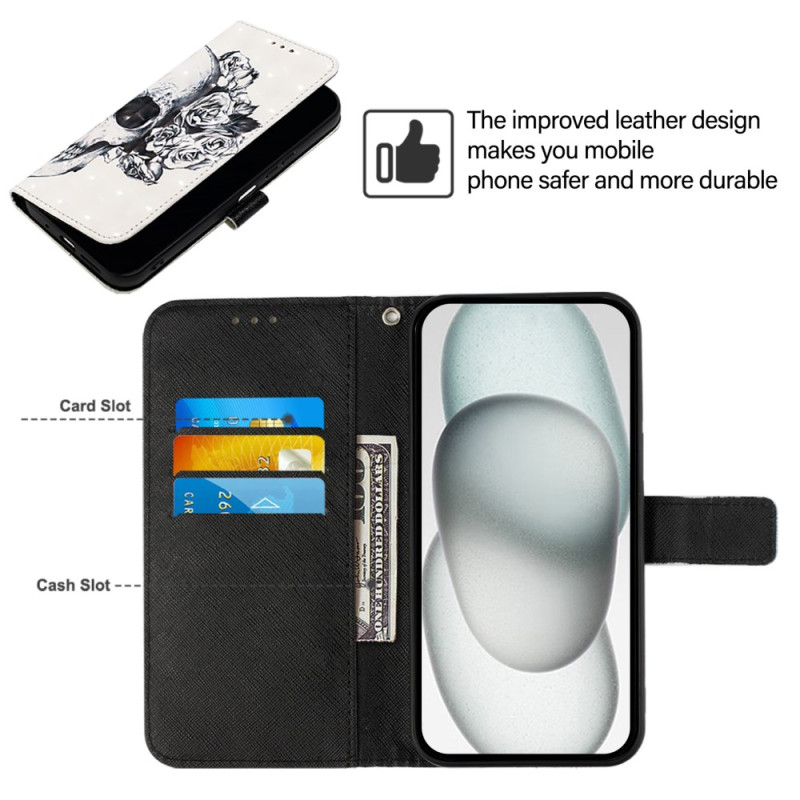 Découvrez notre coque de protection élégante et fonctionnelle pour iPhone 17E / 16E. Avec son motif crâne unique, ses 3 emplacements pour cartes, sa poche pour billets et sa fonction support, elle allie style et praticité.