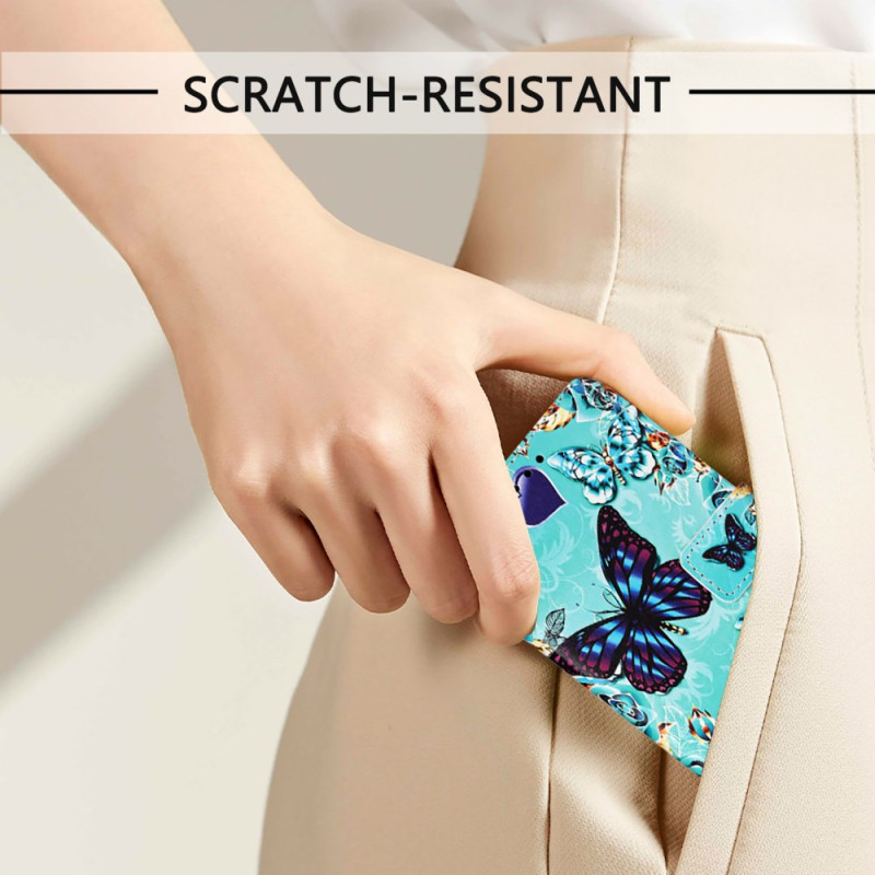 Découvrez notre étui portefeuille luxueux pour iPhone 17E / 16E orné d'un magnifique motif papillon et cœur.