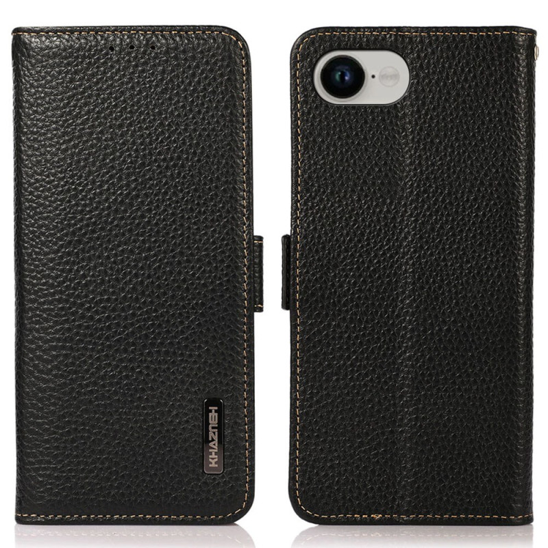 Découvrez notre élégante housse en cuir véritable pour iPhone 17E / 16E. Dotée d'une texture litchi raffinée, elle offre une protection RFID, des emplacements pour cartes et une fonction support.