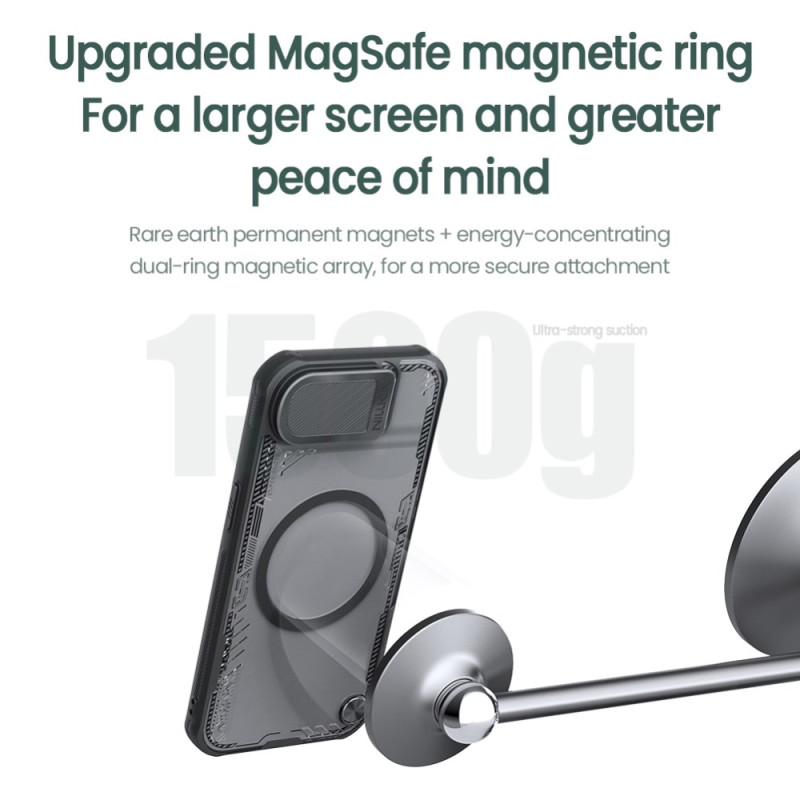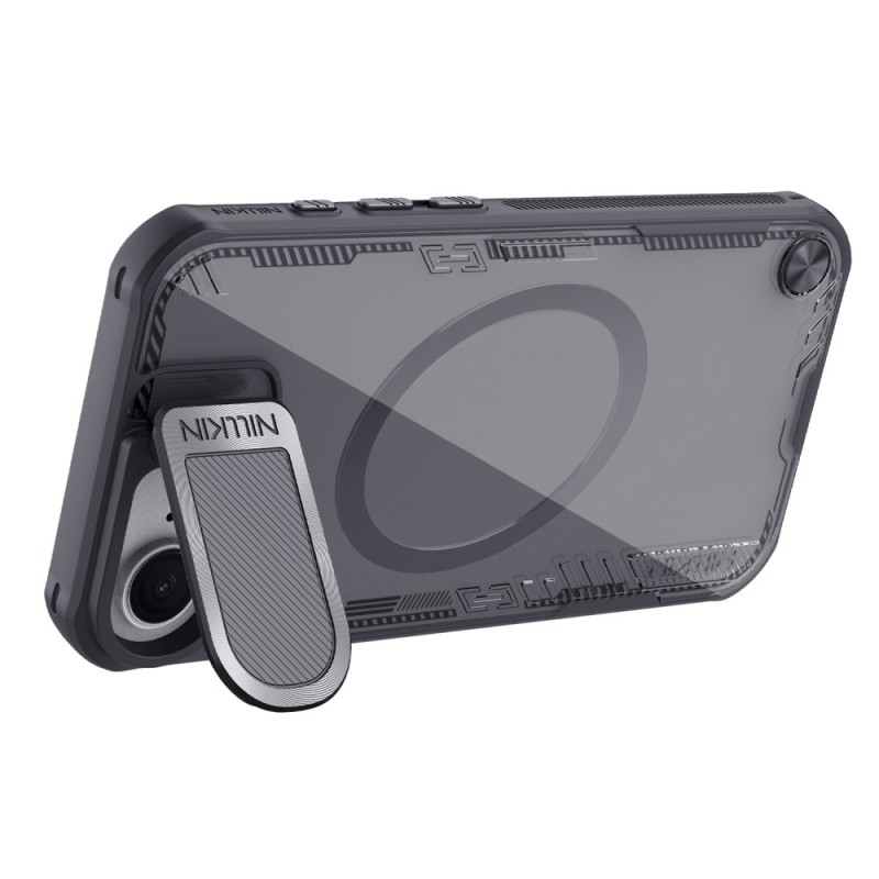 Découvrez la coque NILLKIN Iceblade Prop pour iPhone 17E / 16E, alliant design futuriste et protection robuste. Elle offre une couverture pour l'objectif et un support intégré.