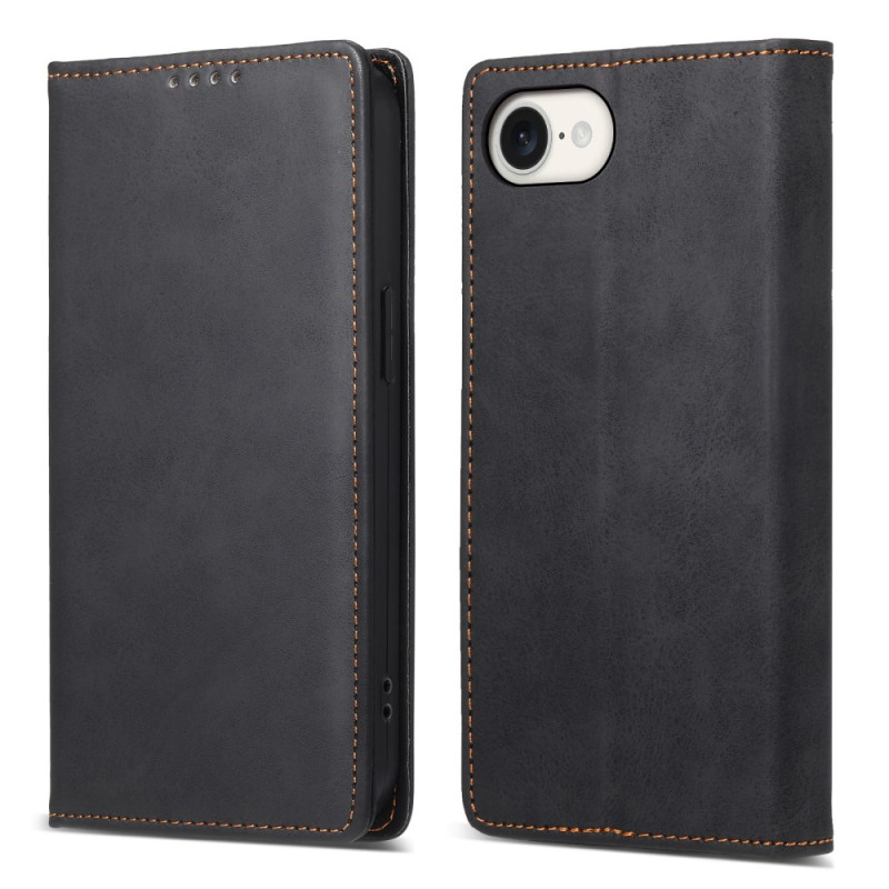 Étui de protection en cuir PU avec fermeture magnétique et technologie RFID pour iPhone 17e / 16e. Offre un confort amélioré, un rangement pratique pour cartes et espèces, des découpes précises et une fonction support. Allie sécurité et fonctionnalité pour une protection optimale de votre appareil.