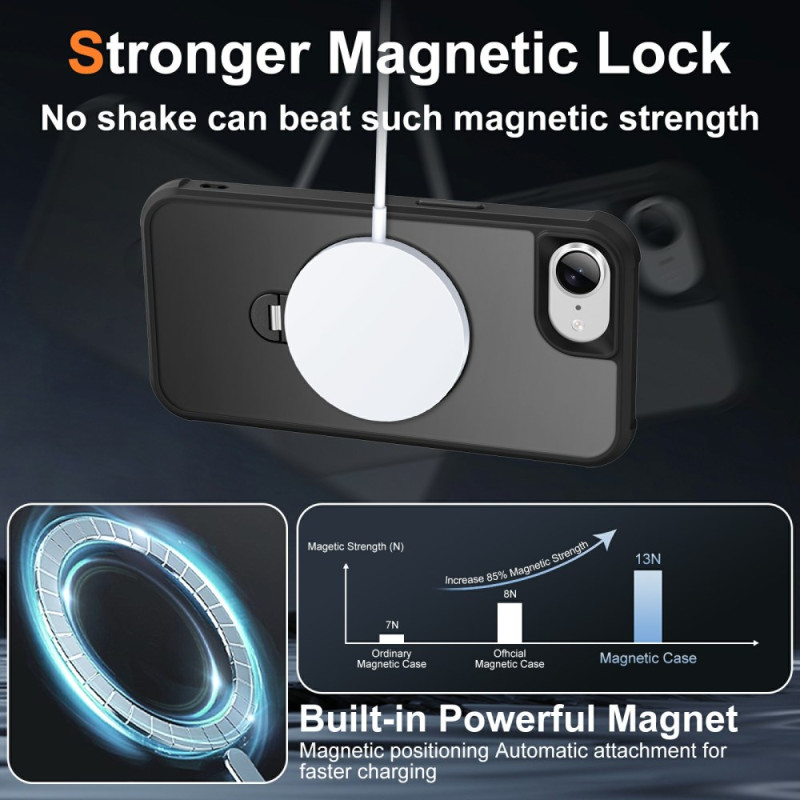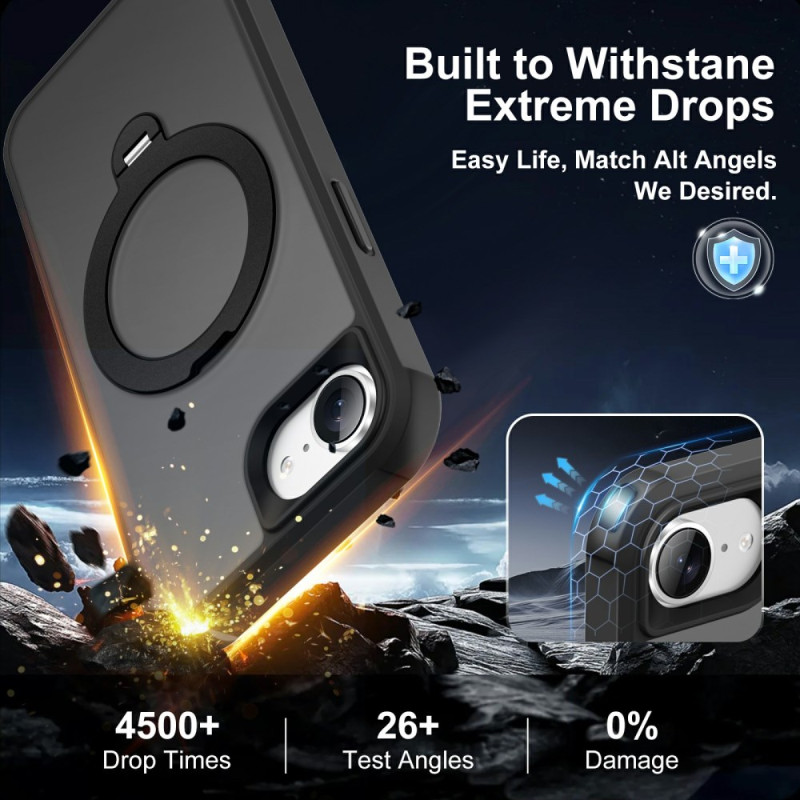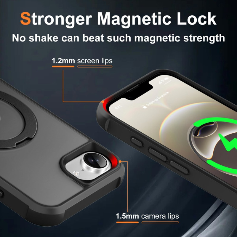 Découvrez notre coque de protection premium pour iPhone 17E / 16E. Compatible MagSafe, elle offre une protection optimale contre les chocs et les chutes. Son support rotatif intégré permet une visualisation mains libres dans plusieurs angles. Les bords surélevés protègent l'écran et la caméra, tandis que le design anti-poussière préserve la qualité sonore.