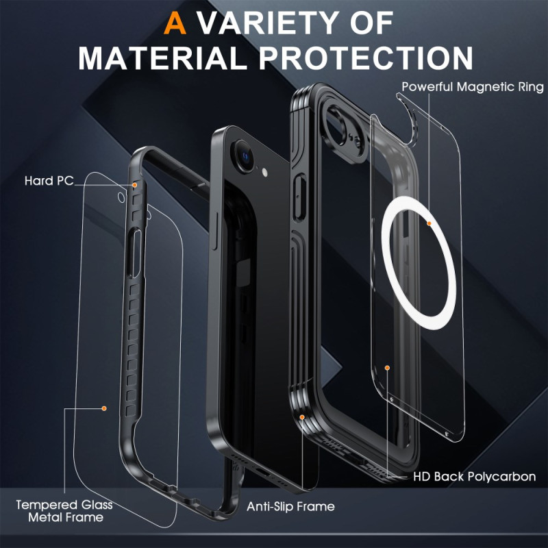 Découvrez notre coque premium pour iPhone 17E / 16E, alliant protection robuste et design élégant. Fabriquée en PC et TPU de haute qualité, elle offre une couverture intégrale, préserve la beauté de votre téléphone et inclut un protecteur d'écran en verre trempé. Compatible avec la charge sans fil MagSafe, cette coque allie fonctionnalité et style.