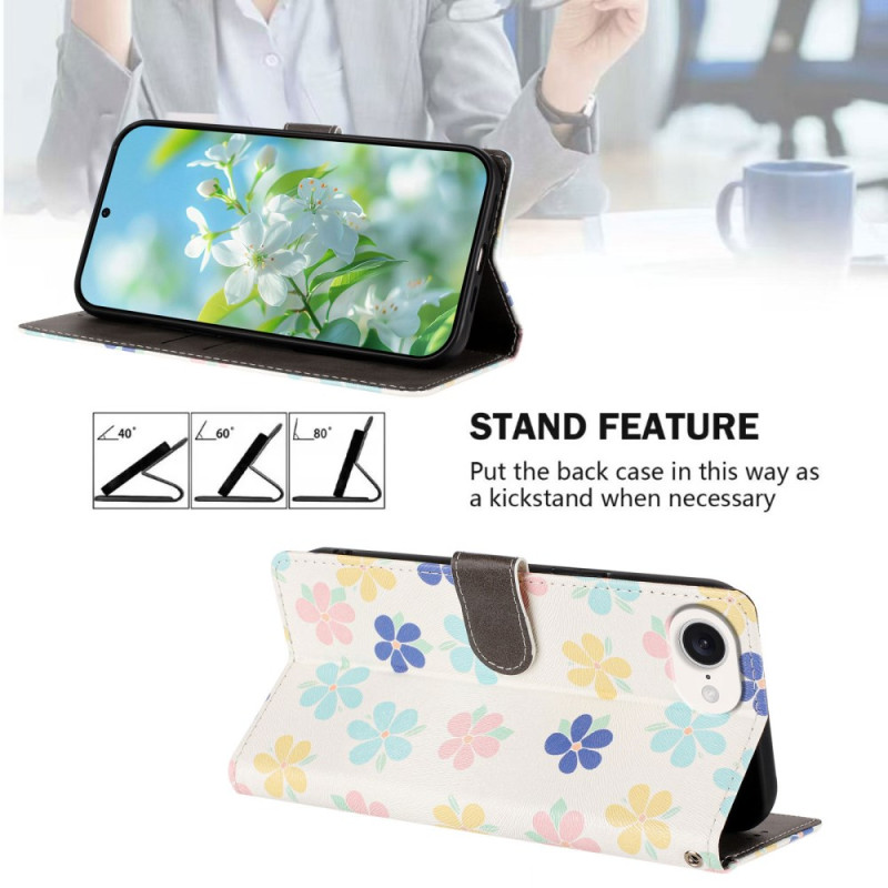 Protégez votre iPhone 17E / 16E avec élégance grâce à cet étui portefeuille orné de fleurs colorées. Doté d'une coque antichoc, de compartiments pour cartes et d'une dragonne pratique, il allie style et fonctionnalité au quotidien.