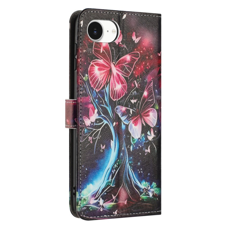 Protégez votre iPhone 17E / 16E avec élégance grâce à cet étui portefeuille au motif arbre aux papillons. Doté de multiples emplacements pour cartes, d'un support pliable pratique et d'une dragonne, il allie style et fonctionnalité.