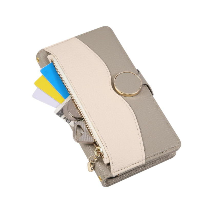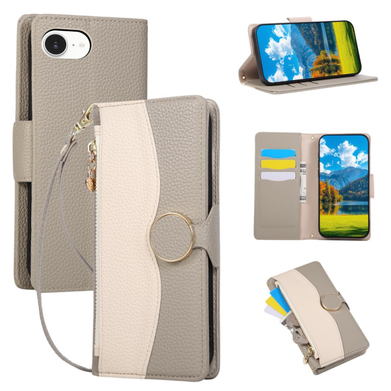 Étui portefeuille élégant pour iPhone 17E / 16E avec fermeture éclair et dragonne amovible. Combine protection premium et fonctionnalité avec 3 emplacements pour cartes, poche zippée latérale et support mains libres intégré.