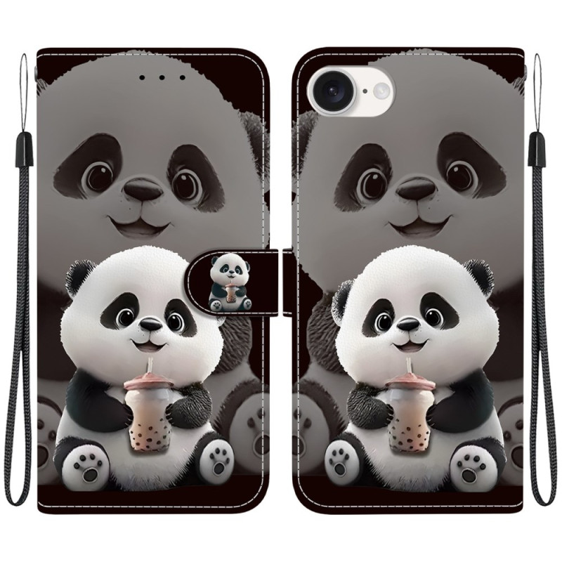 Étui portefeuille élégant avec motif Panda Milk Tea pour iPhone 17E / 16E. Design raffiné combinant protection optimale et fonctionnalité. Support pliable intégré pour un visionnage confortable, 2 emplacements cartes et compartiment billets. Fermeture magnétique sécurisée et dragonne détachable incluse.