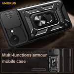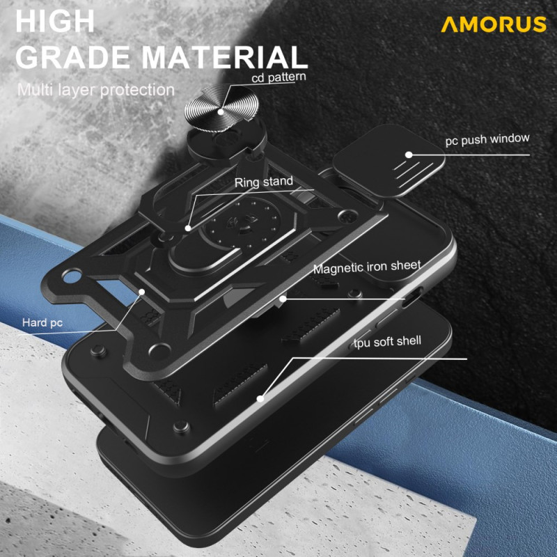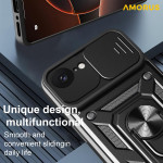 Protégez votre iPhone 17E / 16E avec style grâce à cette coque AMORUS premium dotée d'une béquille rotative, d'une protection caméra coulissante et d'une résistance aux chocs de niveau militaire. Compatible support magnétique pour voiture.