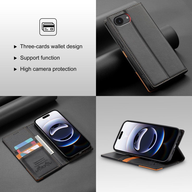 Protégez votre iPhone 17E / 16E avec cet étui portefeuille multifonctionnel doté de la technologie anti-RFID. Équipé de 3 emplacements pour cartes, d'un compartiment pour billets et d'un support intégré pour un visionnage mains libres optimal. Sa fermeture magnétique assure un accès rapide et sécurisé.