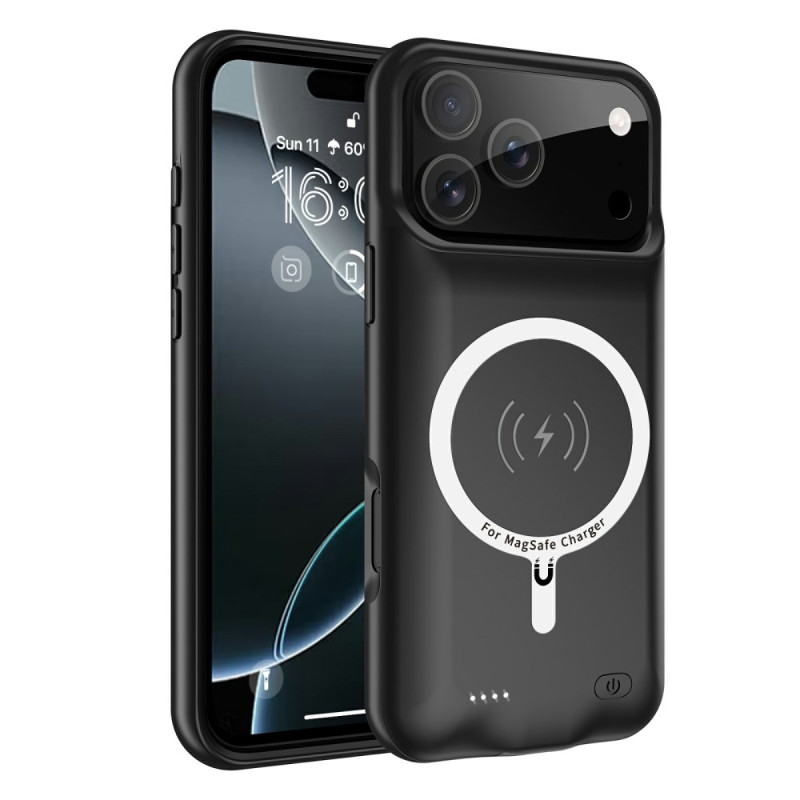 Cette coque batterie de 6000mAh assure une autonomie prolongée à l’iPhone 17 Pro Max tout en conservant une silhouette fine et élégante. Compatible MagSafe, elle permet une recharge sans fil jusqu’à 10W, idéale pour une utilisation simple et pratique au quotidien. Les indicateurs LED affichent clairement le niveau de batterie, et les bords en TPU assurent une protection efficace contre les chocs. Sa conception en ABS et TPU facilite l’installation et garantit une charge stable, tout en préservant l’accès complet aux commandes.