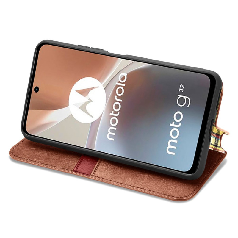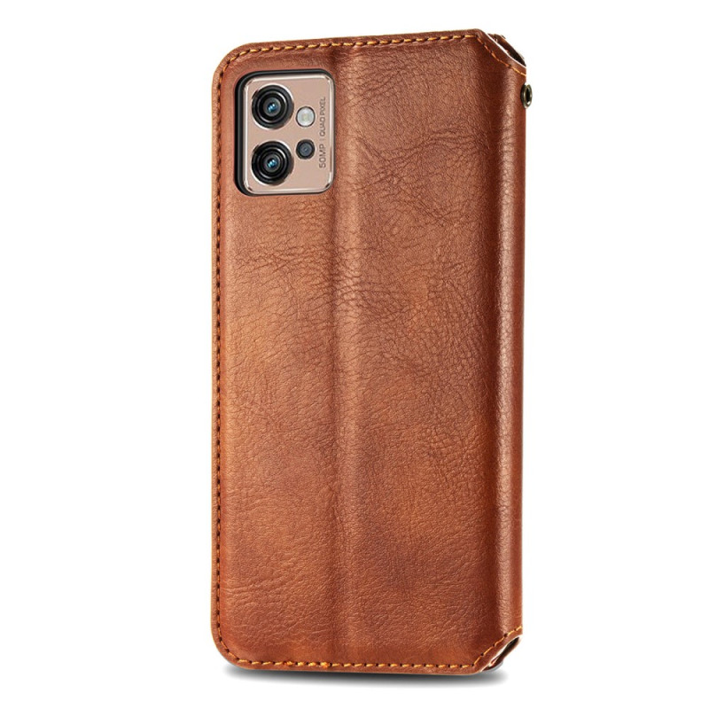 Cette superbe flip cover vintage à texture 3D sécurisera finement et sûrement votre Moto G32.