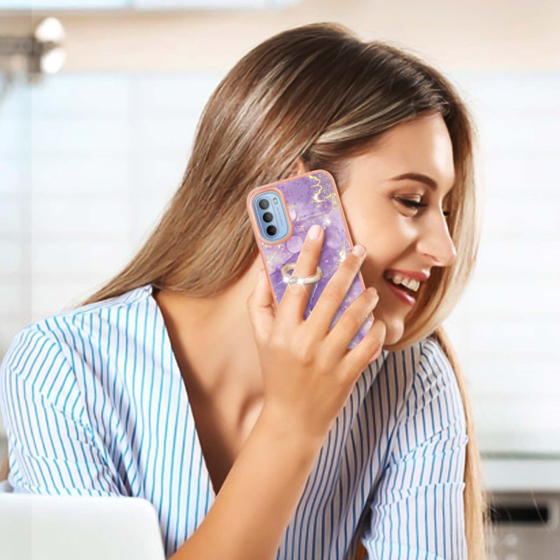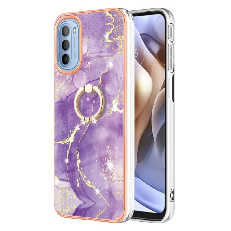 Protégez votre Moto G51 5G avec cette coque à motif marbre brillant munie d'un anneau-support très pratique.