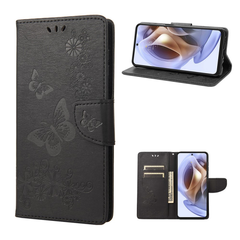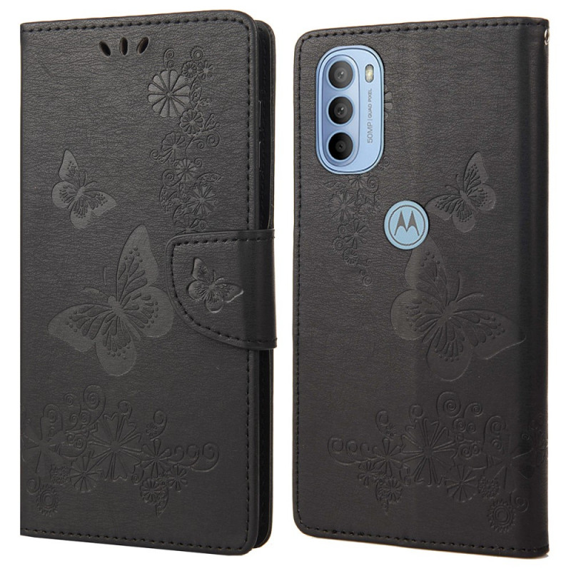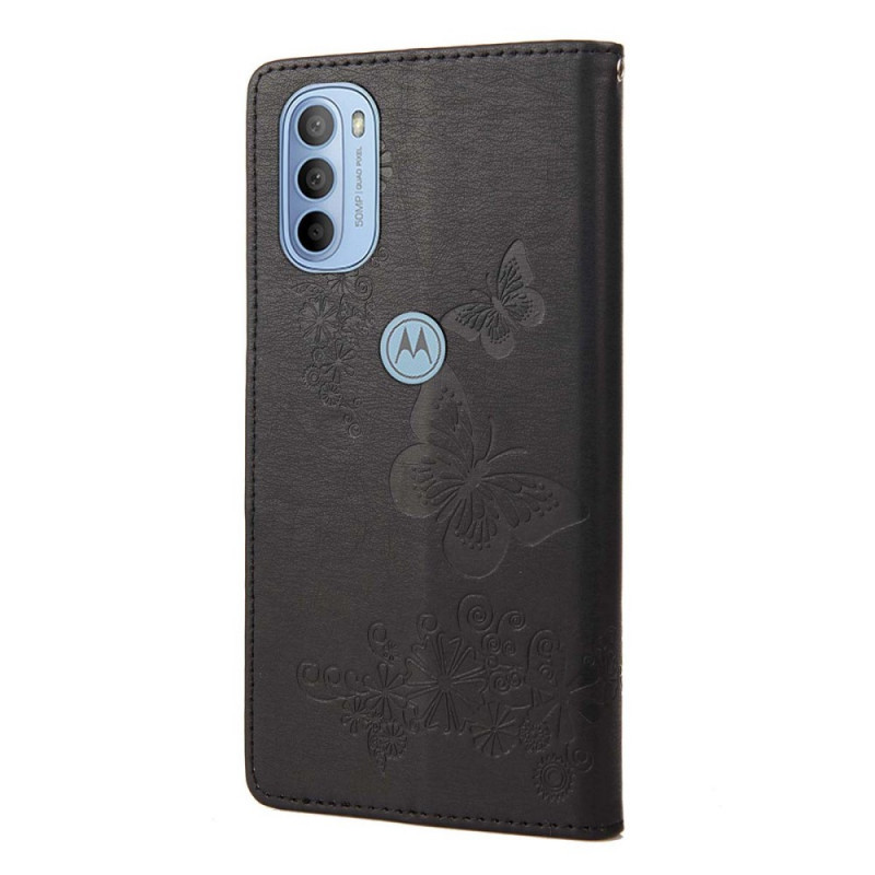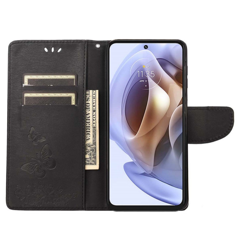 Votre Moto G51 5G est protégé de façon portefeuille avec cette housse en simili cuir empli de splendides papillons, qui vient avec une lanière amovible.