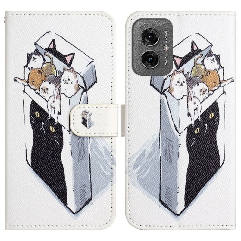 Découvrez notre étui portefeuille chic et fonctionnel pour Motorola Moto G55 5G. Alliant style et protection, il arbore un adorable motif de chats et offre une texture croisée pour une meilleure prise en main.