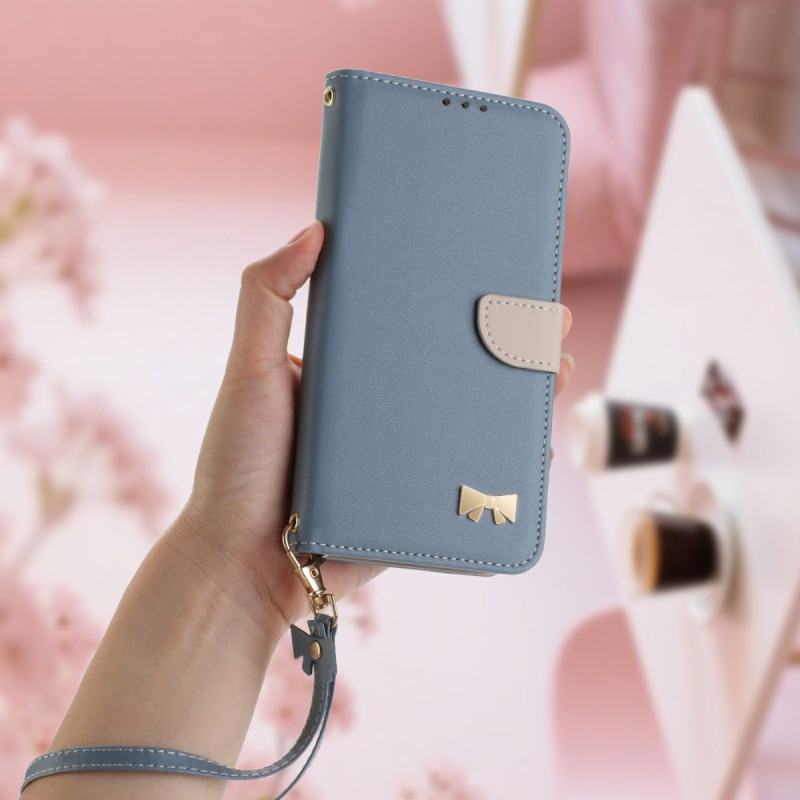 Découvrez notre étui portefeuille élégant pour Motorola Moto G56 5G. Alliant protection et style, il offre une double couche de protection, un décor nœud papillon chic, des compartiments pour cartes et billets, une fonction support ajustable et une dragonne détachable pour une utilisation pratique au quotidien.