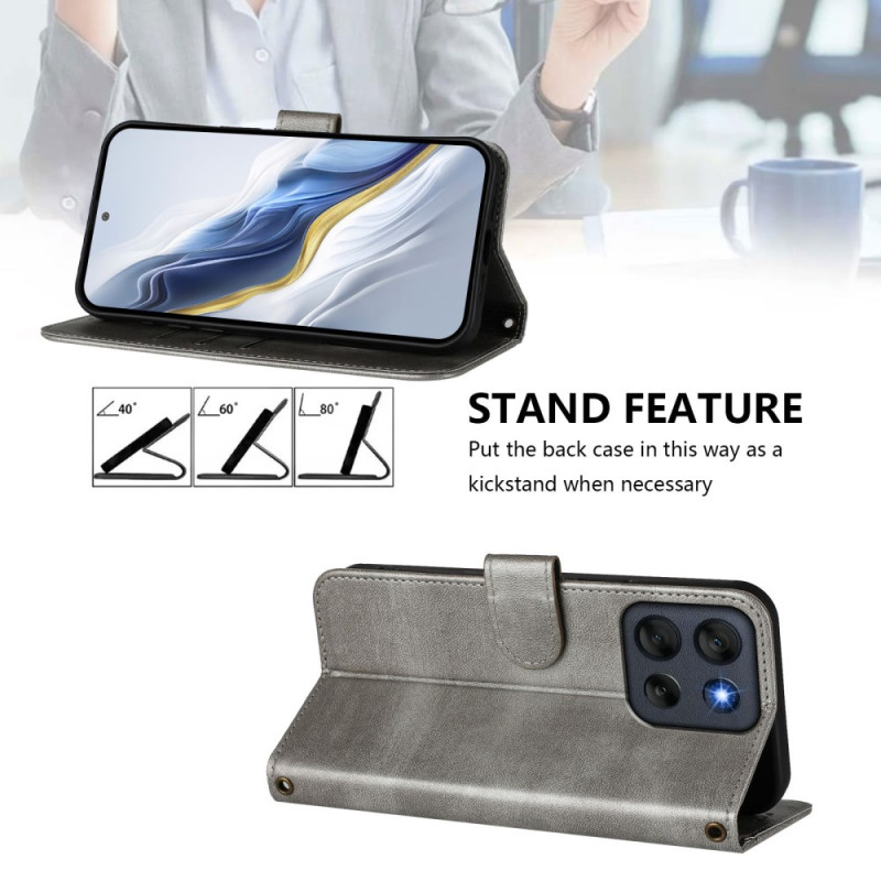 Découvrez notre étui portefeuille élégant pour Motorola Moto G56 5G. Fabriqué en cuir PU texturé rétro et TPU doux, il offre une protection complète avec un style vintage. Profitez de multiples rangements pour cartes, d'une fonction support ajustable et d'une fermeture magnétique pratique. La dragonne incluse assure une portabilité optimale.