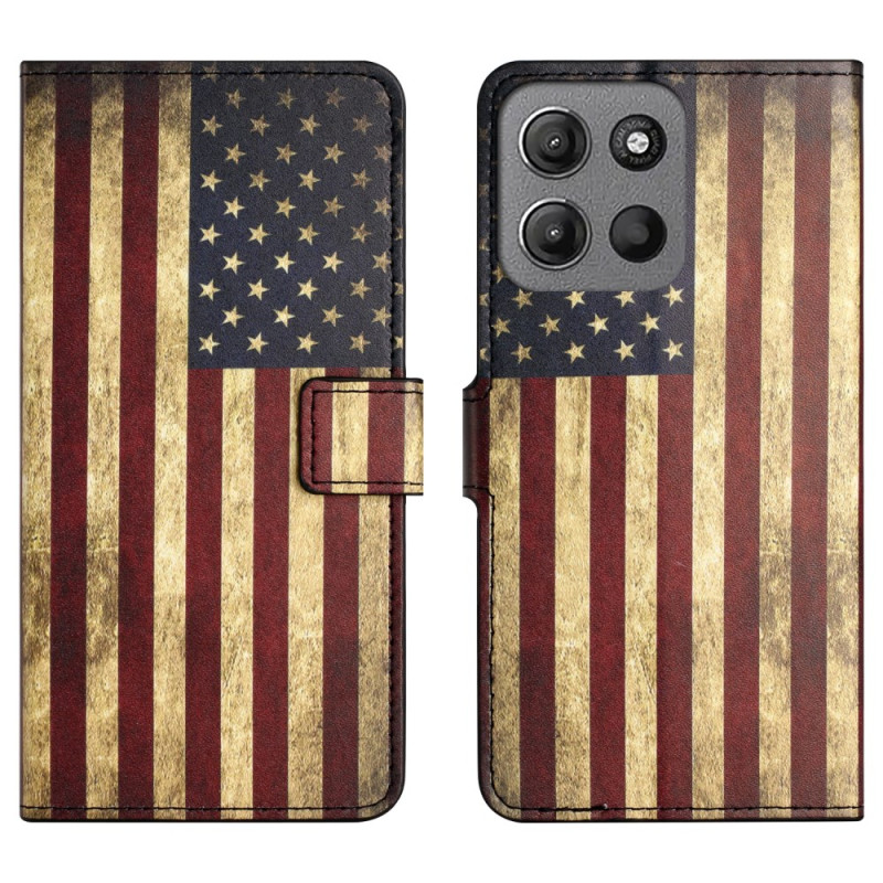 Découvrez notre étui portefeuille élégant pour votre Motorola Moto G56 5G. Alliant style et fonctionnalité, il offre une protection complète en cuir PU avec un motif distinctif du drapeau américain. Profitez de la commodité d'un portefeuille, d'un support de visionnage et d'une fermeture magnétique sécurisée. Idéal pour protéger votre appareil avec élégance.