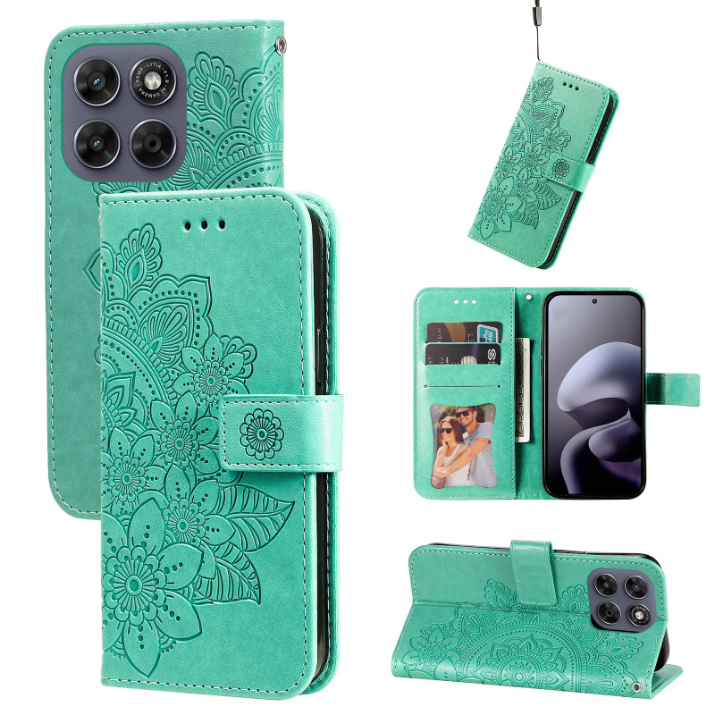 Protégez votre Motorola Moto G77 5G / G67 5G avec cet étui portefeuille vert motif floral élégant.