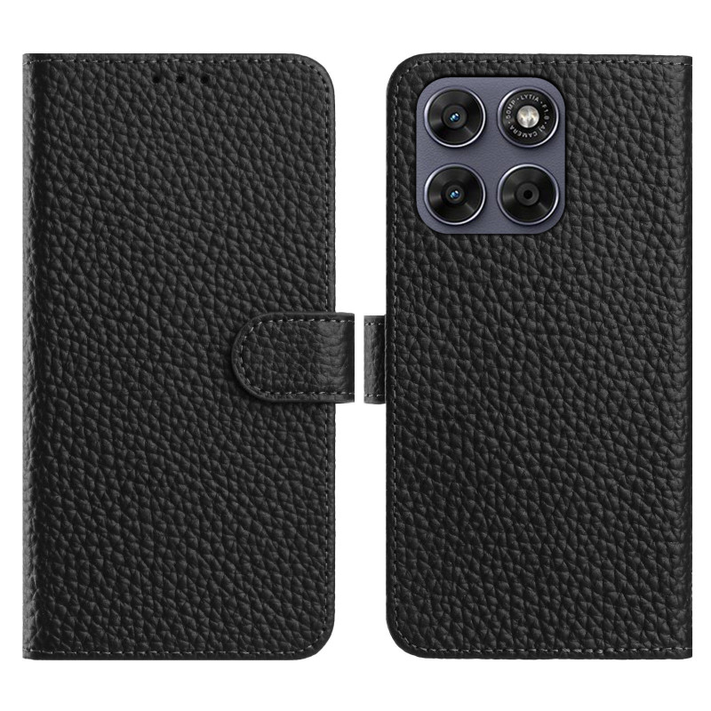 Protégez votre Motorola Moto G77 5G / G67 5G avec cet étui portefeuille cuir véritable litchi noir élégant.