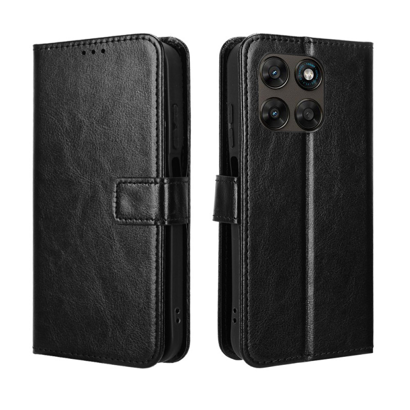 Alliez style vintage et protection avec cet étui Motorola Moto G77 5G / G67 5G en texture Crazy Horse noir.