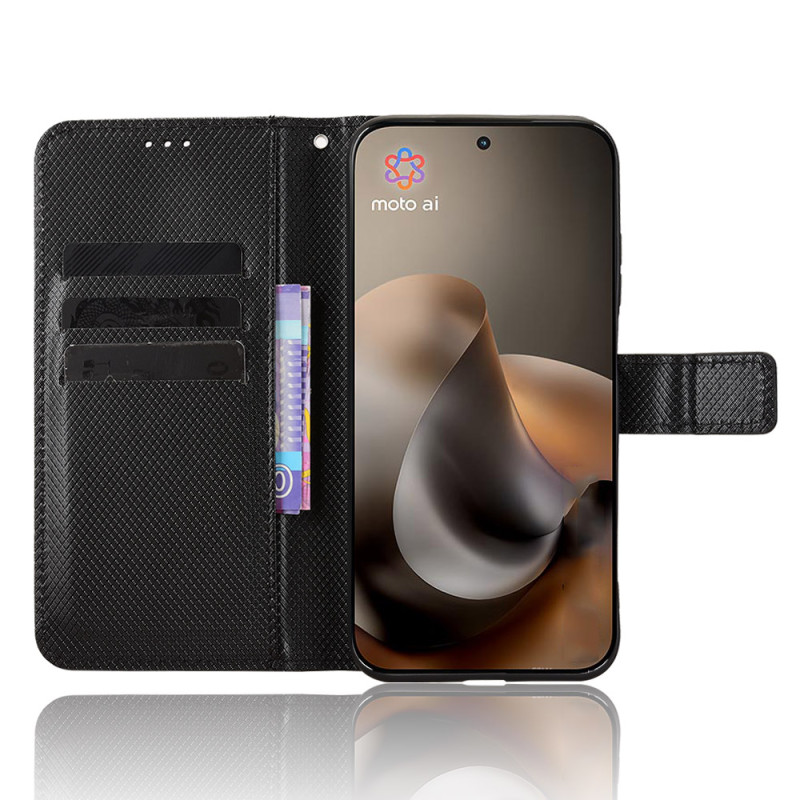 Ajoutez une touche élégante à votre Motorola Moto G77 5G / G67 5G avec cet étui portefeuille noir à texture diamant.