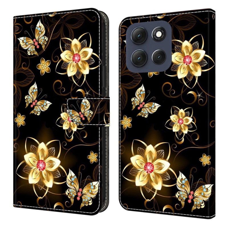 Découvrez notre étui portefeuille élégant pour Motorola Moto G86 5G. Avec son design unique de fleurs dorées et papillons, il offre style et protection. Fabriqué en cuir PU de qualité, il dispose d'un support pliable, de rangements pour cartes et d'une fermeture magnétique sécurisée.