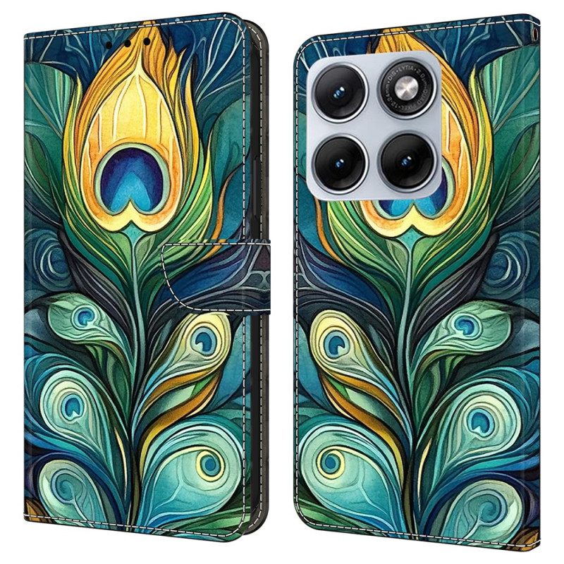 Protégez votre Motorola Edge 70 Fusion 5G avec cet étui portefeuille motif plumes vertes au style naturel.