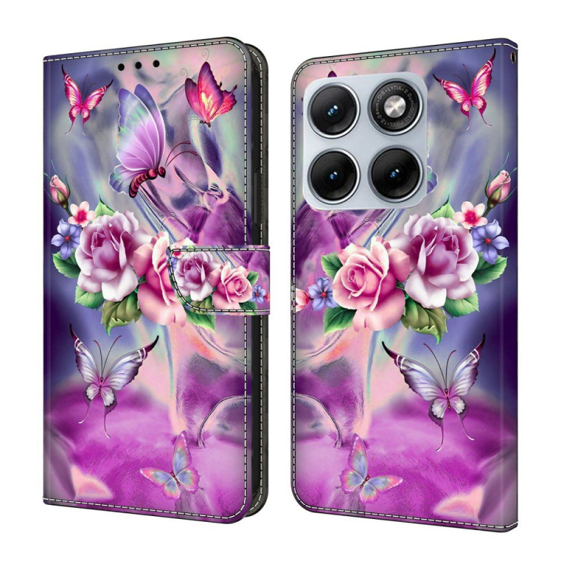 Magnifiez votre Motorola Edge 70 Fusion 5G avec cette housse portefeuille aux papillons et fleurs.