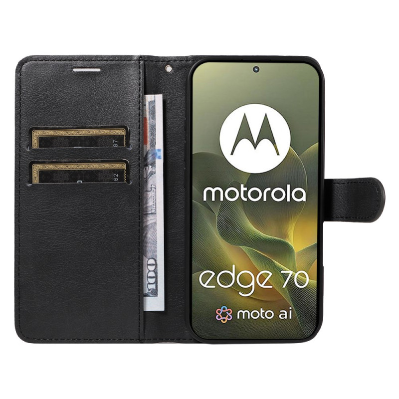 Protégez votre Motorola Edge 70 5G avec élégance grâce à cet étui portefeuille multifonction. Doté d'une fermeture magnétique sécurisée, de multiples emplacements pour cartes et d'une fonction support pratique, il allie style et praticité au quotidien.
