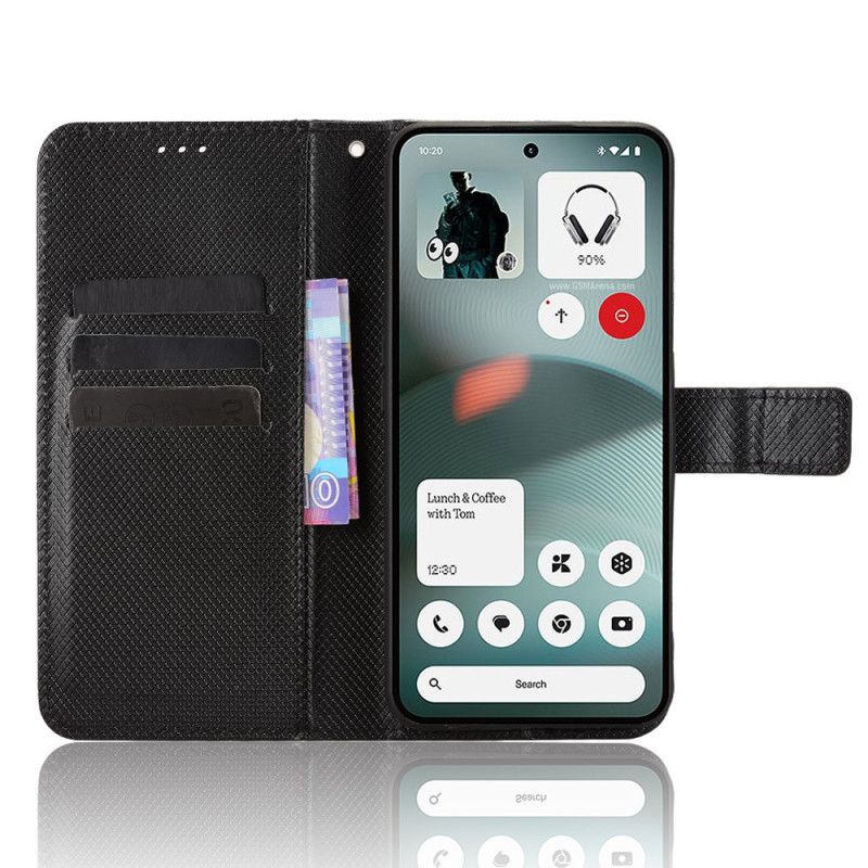 Protégez votre Nothing Phone (3a) Lite 5G avec élégance grâce à cet étui portefeuille en cuir PU à texture diamant. Doté de fentes pour cartes, d'une poche pour billets, d'un support pliable et d'une dragonne pratique pour un usage quotidien optimal.