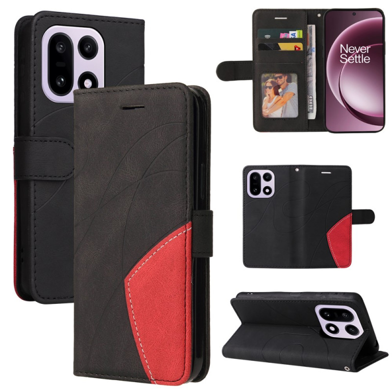 Étui portefeuille élégant en cuir PU pour OnePlus 15 5G. Design bicolore raffiné avec fonction support intégrée, fentes pour cartes et photo, et fermeture magnétique sécurisée. Protection complète et style au quotidien.