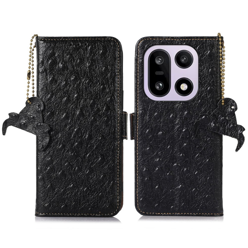 Découvrez cet étui portefeuille élégant en cuir véritable de vache avec texture autruche pour votre OnePlus 15 5G. Doté de la technologie de blocage RFID, il protège vos cartes bancaires tout en offrant un rangement pratique avec 2 emplacements pour cartes, 1 pochette photo et 1 compartiment pour espèces.