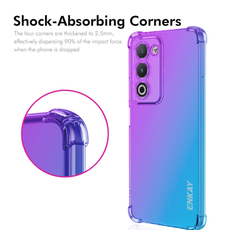 Protection optimale pour votre Oppo A5 5G avec cette coque TPU ENKAY aux coins renforcés. Design élégant à dégradé de couleurs, absorption des chocs à 90%, rebords surélevés pour protéger l'écran et l'objectif photo contre les rayures et les impacts.