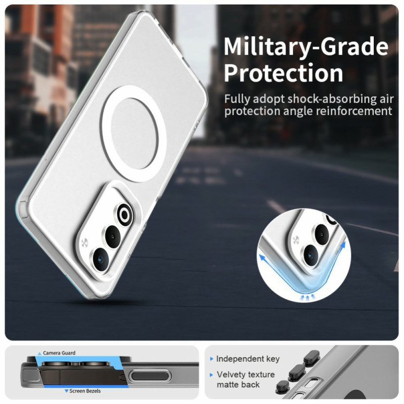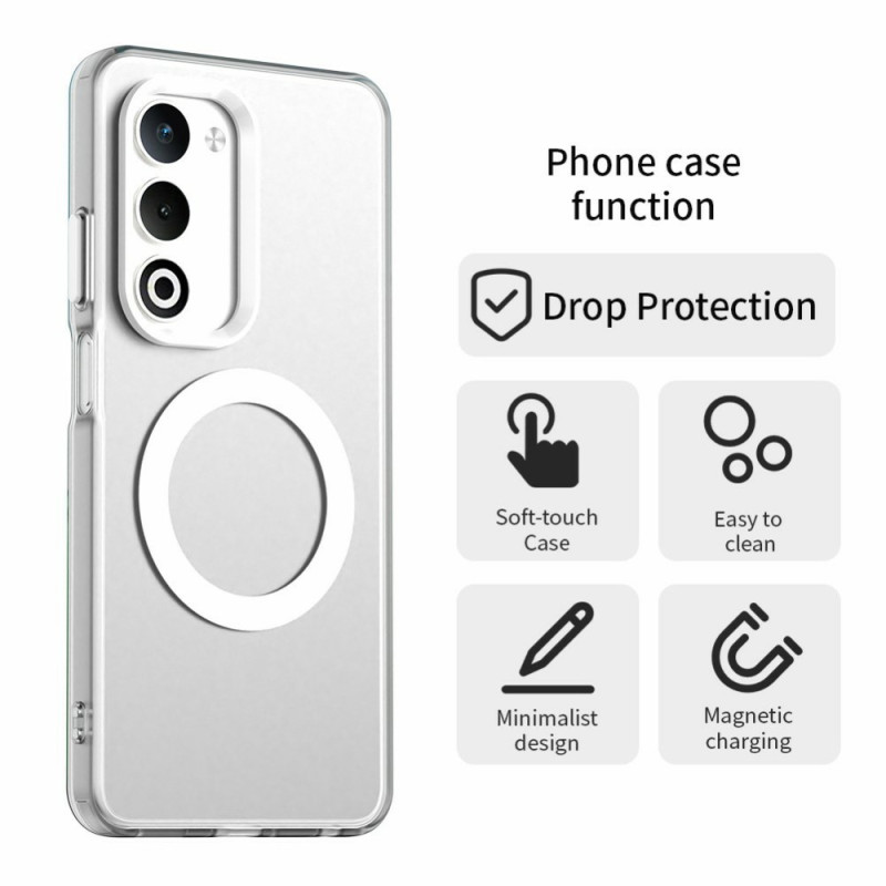 Protégez votre Oppo A5 5G avec cette coque compatible MagSafe. Conception hybride résistante aux chocs avec recharge sans fil magnétique. Bords surélevés pour protéger l'écran et la caméra. Design slim et élégant pour un usage quotidien.