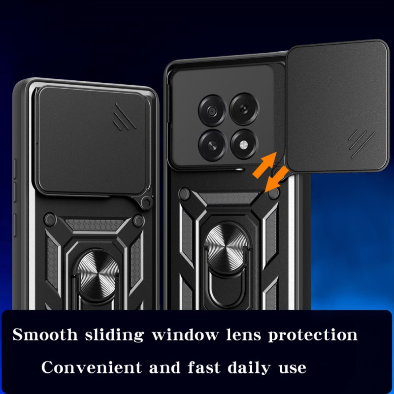 Protection militaire complète pour votre Oppo A5 5G. Dotée d'un cache caméra coulissant innovant, d'un support rotatif mains libres et d'une compatibilité magnétique pour support voiture. Fabrication anti-traces avec absorption optimale des chocs.