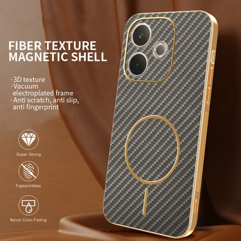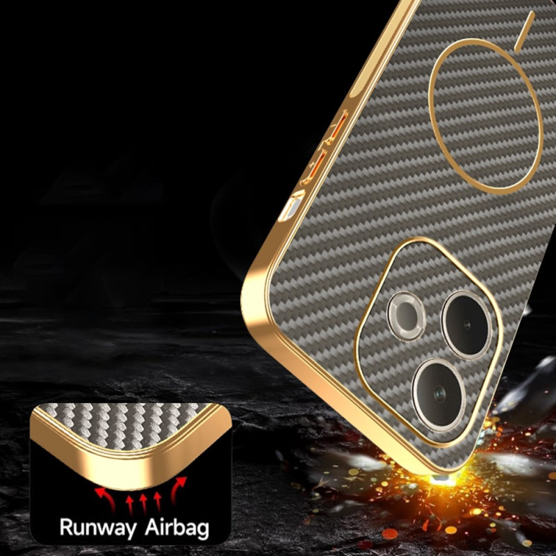 Protégez votre Oppo A5 Pro 5G / 4G avec cette coque TPU au design sophistiqué en fibre de carbone. Offrant une absorption optimale des chocs, une finition électrodéposée premium et une résistance aux empreintes digitales, elle allie style et protection.