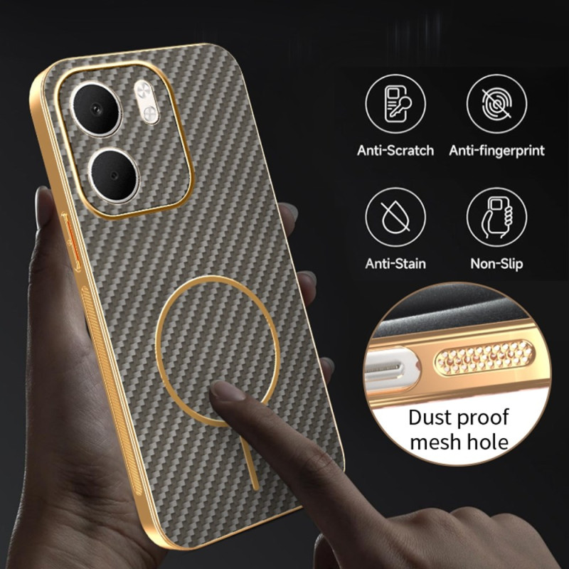 Protégez votre Oppo A5X 5G avec cette coque en TPU souple à finition électrolysée premium. Sa texture fibre de carbone élégante résiste aux empreintes digitales tandis que ses bords surélevés protègent l'écran et la caméra contre les rayures.