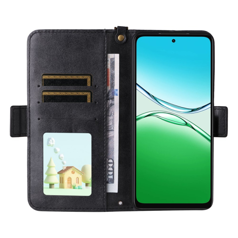 Étui portefeuille multifonction pour Oppo A5X 4G alliant protection et praticité. Doté de multiples emplacements pour cartes, d'une fermeture magnétique sécurisée et d'une bandoulière ajustable de 150cm pour un transport mains libres.