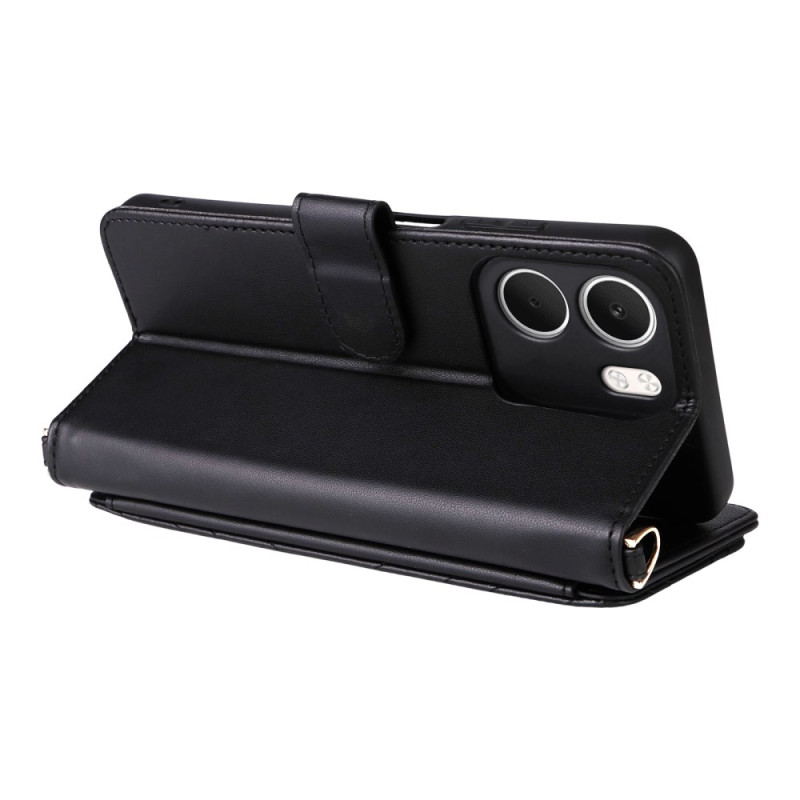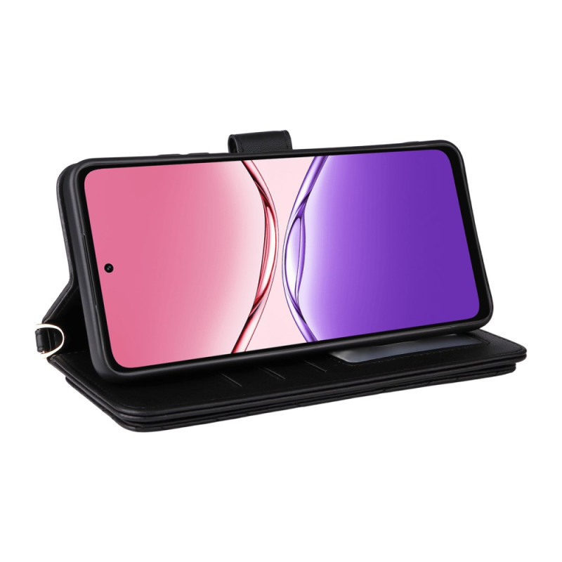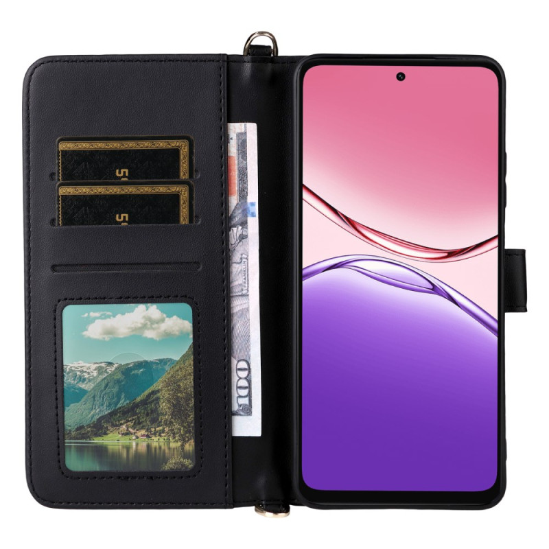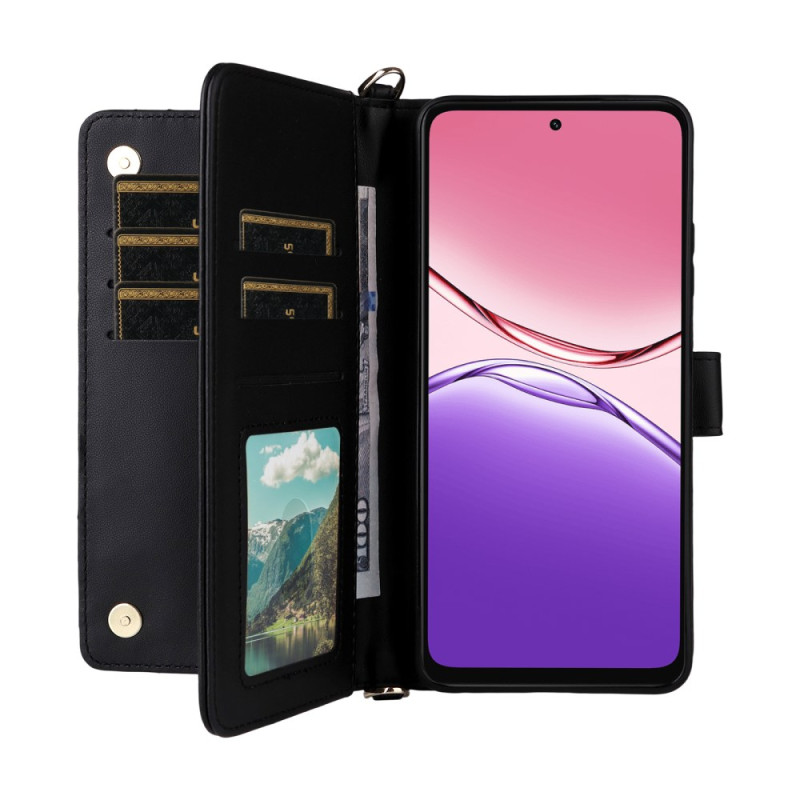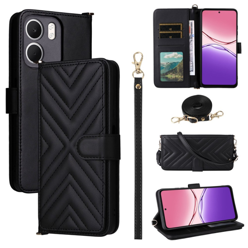 Étui portefeuille élégant pour Oppo A5X 4G en cuir PU premium avec support ajustable, fermeture magnétique sécurisée et bandoulière amovible. Protégez votre téléphone avec style tout en gardant vos cartes et espèces à portée de main.