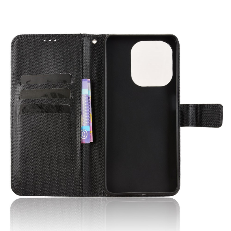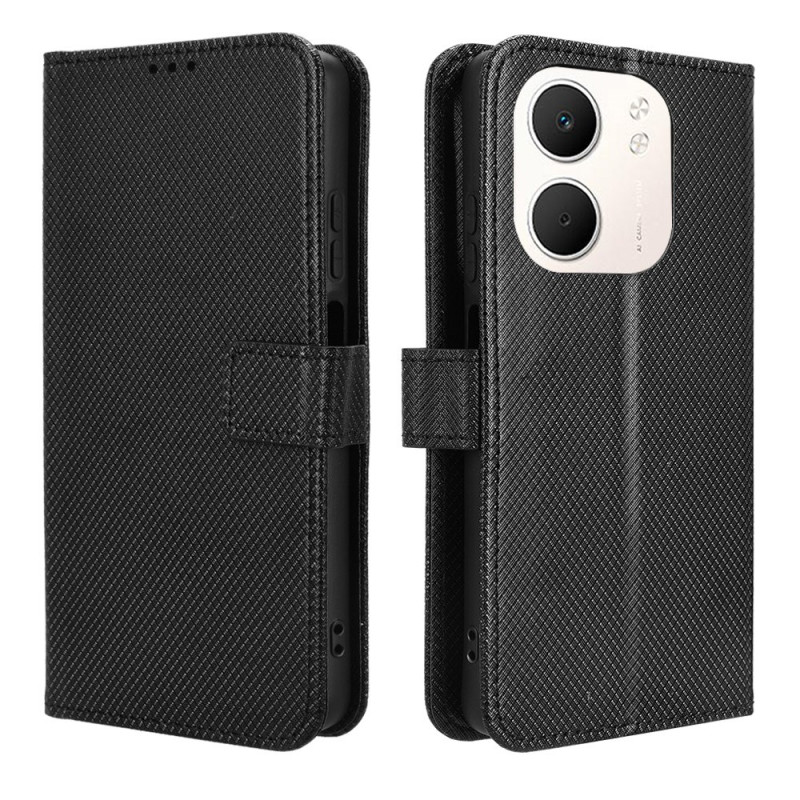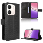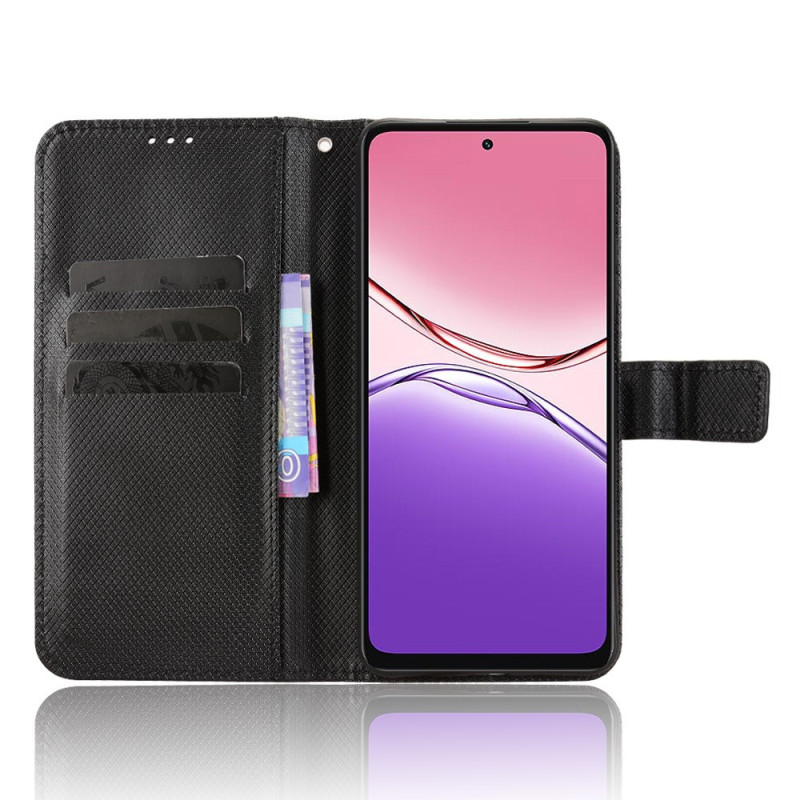 Étui portefeuille élégant avec texture diamant pour votre Oppo A5X 4G. Dispose de fentes pour cartes, d'une poche pour espèces et d'une dragonne pratique. Fermeture magnétique sécurisée et support pliable intégré pour un visionnage mains libres optimal.