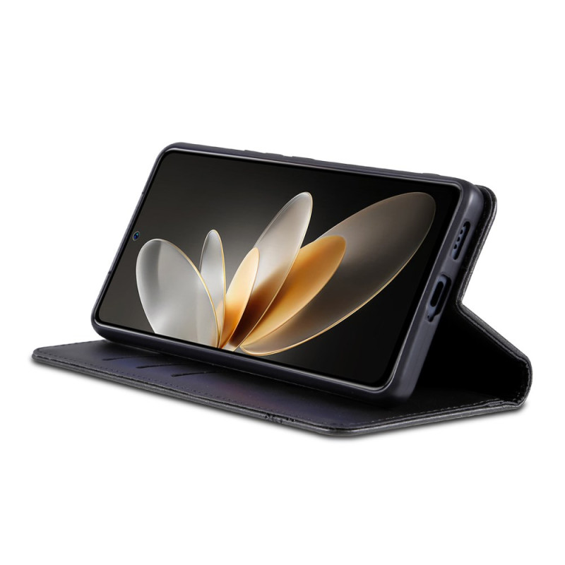 Étui portefeuille élégant en cuir PU pour Oppo A6 Pro 5G avec fonction support, porte-cartes intégrés et fermeture magnétique. Protection complète avec coque intérieure TPU résistante et rebords surélevés pour protéger l'appareil photo.