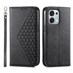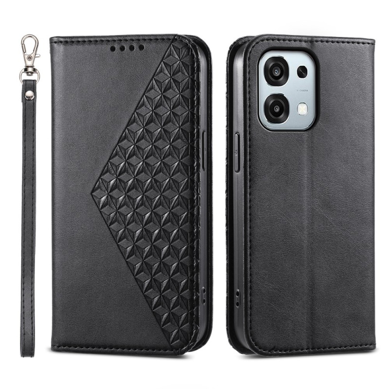 Étui portefeuille élégant avec texture grain de veau pour votre Oppo A6 Pro 5G / 4G. Design raffiné avec motif losange, emplacements pour cartes et compartiment cash intégrés. Fermeture magnétique sécurisée, fonction support et dragonne pratique incluse.